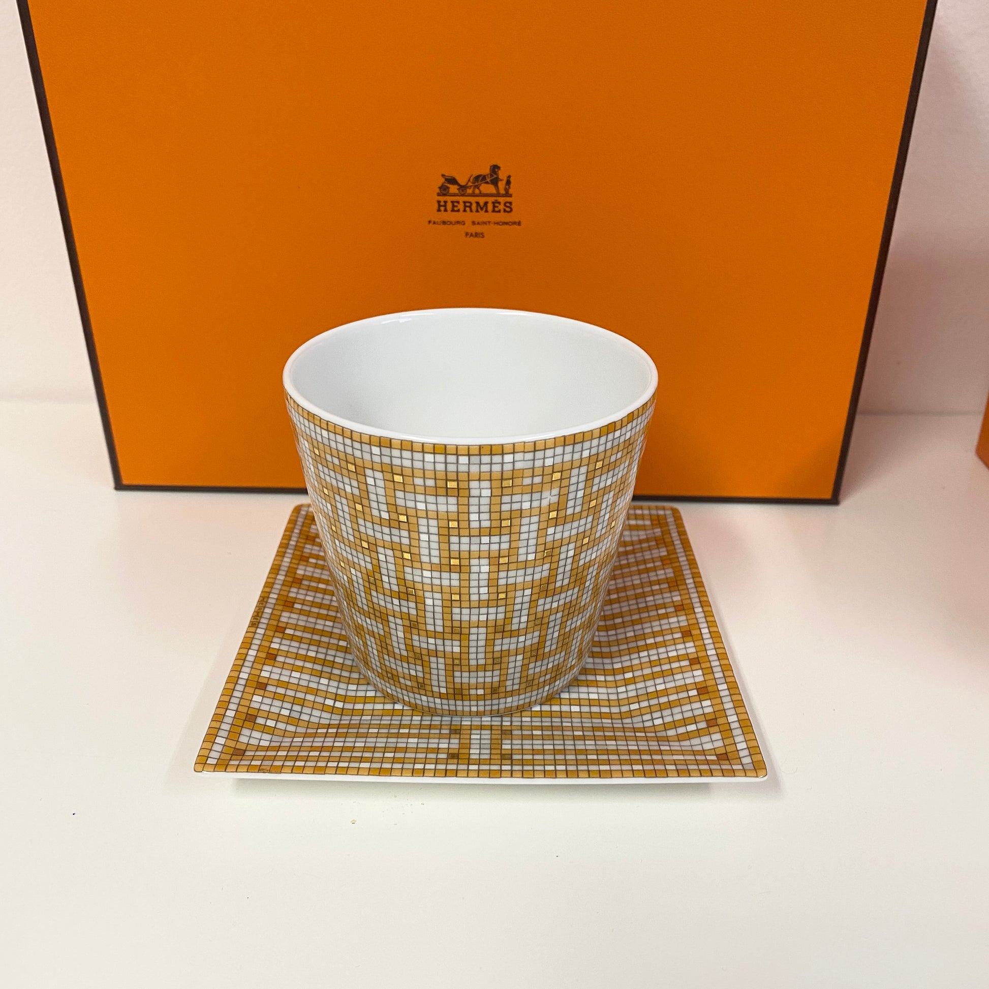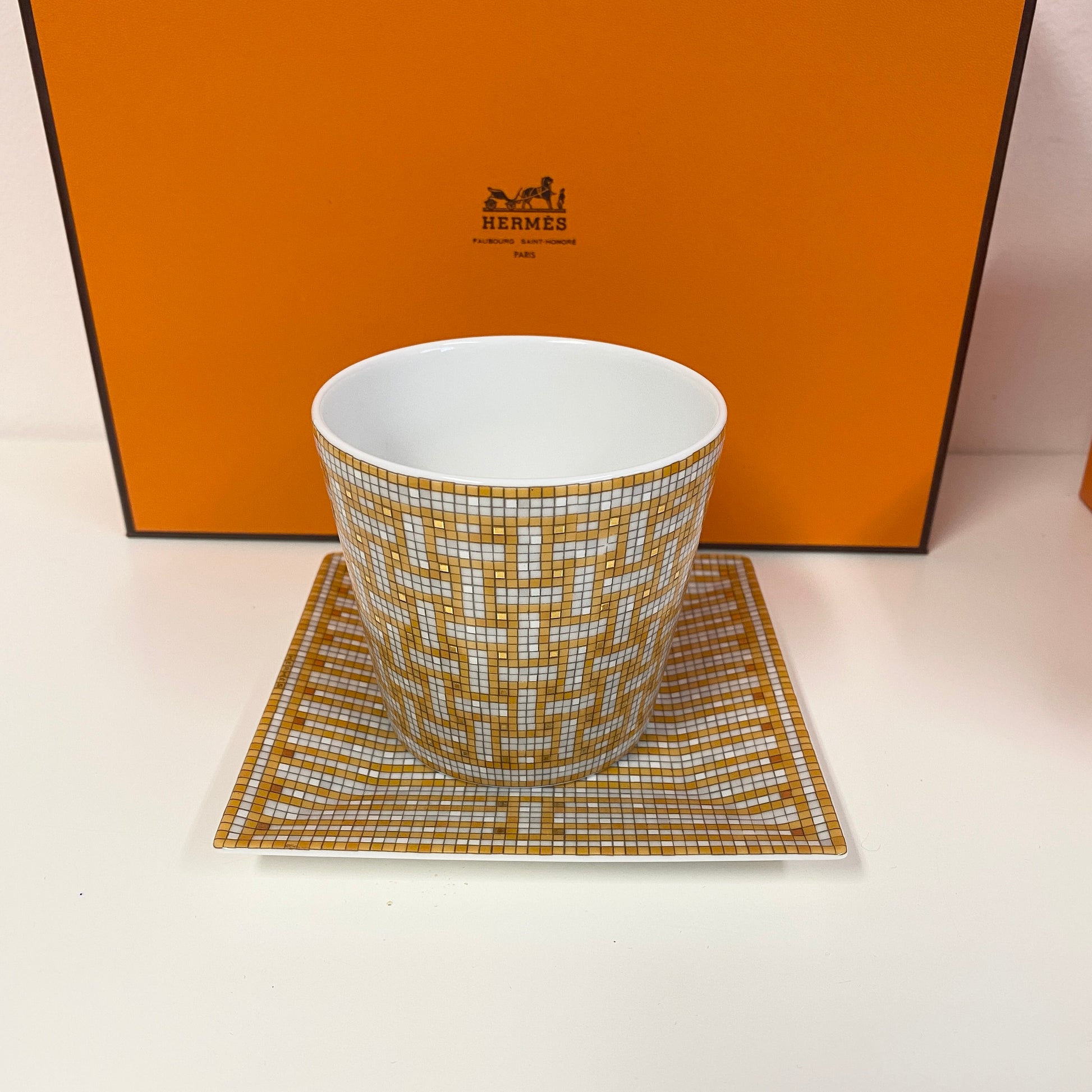 Hermes au 24 (tumbler and candle, square plate n°2) in porcelain