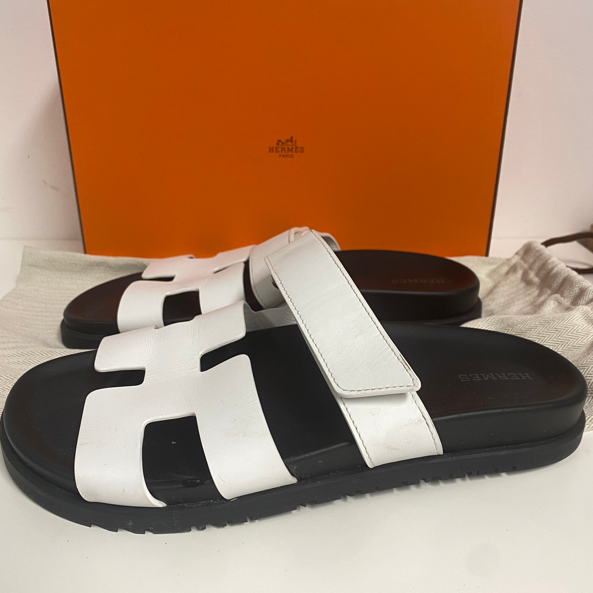 Hermes White Chypre Sandals